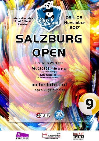 Roman Hybler (CZE) gewinnt Salzburg Open 2017 im Finale gegen Klaus Zobrekis (GER) mit 7-3. Den 3. Platz belegen Albin Ouschan (AUT) und Georg Höberl (AUT).