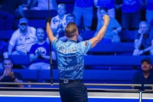 Die Abendsession begann mit dem britischen Derby zwischen Jayson Shaw und Eliott Sanderson in Team A und dem Team B aus Chris Melling und Imran Majid. Shaw eröffnete das Match mit einem Breakfoul und das Team B nutzte dieses eiskalt aus, um Rack um Rack zu verbuchen und mit 7:0 in die nächste Runde einzuziehen. Auch im zweiten Match spielte ein Breakfoul eine entscheidende Rolle. Estland und Serbien lieferten sich einen packenden Fight bis zum 6:6, dann ging Aleksa Pecelj beim Anstoß die Weiße ab und er musste gemeinsam mit Andreja Klasović ansehen, wie Denis Grabe und Rainer Laar den Tisch runterspielten.