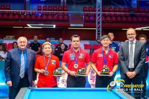 Das Team von den Philippinen hat sich bei der erstmals seit 2014 ausgetragenen Team-Weltmeisterschaft im österreichischen Klagenfurt den Titel gesichert. Im Endspiel gelang Rubilen Amit, Carlo Biado und Johann Chua ein 3:0-Erfolg gegen Großbritannien. Die Philippinen sind damit der vierte Team-Weltmeister nach den Briten (2010), Taiwan (2012) und dem letzten Sieger China. Das deutsche Trio musste sich im Halbfinale geschlagen geben und wurde damit ebenso Dritter wie das Team aus Taiwan.