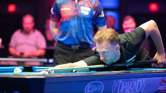 Der Traum von der Titelverteidigung ist aus! Joshua Filler hat im entscheidenden Spiel zur Qualifikation für die Endrunde der letzten 16 mit 3:11 gegen den Polen Mieszko Fortuński verloren und damit den Weg für einen neuen Champion freigemacht. Auch Weltmeister Albin Ouschan, „Terminator“ Niels Feijen und Jayson Shaw mussten vor der Endrunde die Segel streichen. Filler war nach seiner Niederlage gegen Yapp am Vorabend am Donnerstag frisch in die Verliererrunde gestartet und hatte zunächst stark losgelegt. Nach einem 11:6 gegen Alan Rolon Rosado ließ der „Killer“ auch Skyler Woodward keine Chance und siegte auf dem TV-Tisch mit 11:4. Im entscheidenden Match ging dem 23-Jährigen dann aber die Puste aus. Ein paar Ungenauigkeiten im Spiel des Deutschen verhalfen einem sehr gut aufgelegten Fortuński zum klaren Sieg. Damit war dann auch endgültig besiegelt, dass die Endrunde ohne deutsche Beteiligung stattfindet. Der letzte am Donnerstag ebenfalls noch vertretene Landsmann Fillers war Ralf Souquet. Der „Kaiser“ musste sich aber gleich am Morgen Jeffrey de Luna mit 3:11 geschlagen geben. US-Open-Rekordchampion Shane van Boening erlebte einen Abend mit gemischten Gefühlen. […]